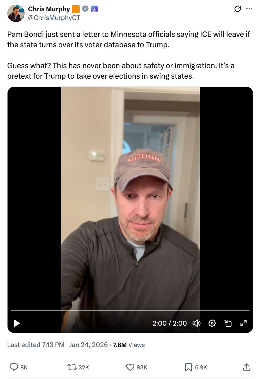 You should see this important message from Chris about Pam Bondi demanding Minnesota’s voter rolls.