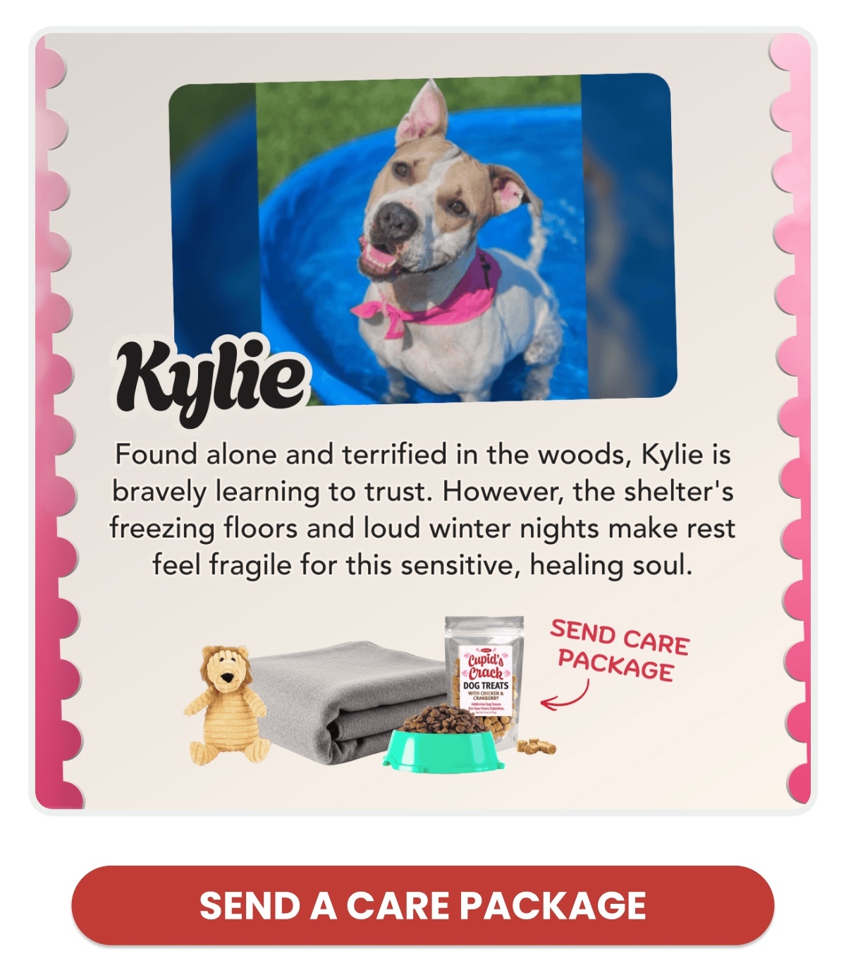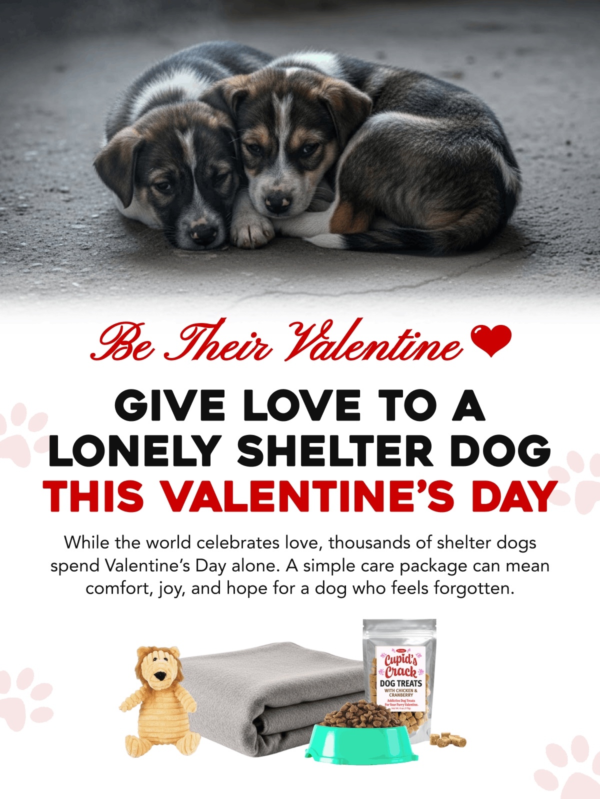 Your Valentine's Care Package delivers more than just supplies—it delivers a message of survival and love to a dog who feels forgotten.