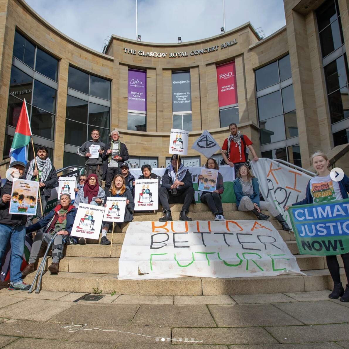 Scottish Rebels joined climate and trade union groups outside the Strathclyde Pension Fund’s 50th anniversary in Glasgow to express their anger and deep concern over how workers’ pensions are being invested. Holding an “unhappy birthday” protest, they highlighted the fund’s links to arms-related industries and called for an end to investments in some of the world’s biggest polluters (Shell, TotalEnergies, and Eni, to name a few) which are driving climate breakdown and contributing to the suffering of people in Gaza. Protesters appealed for compassion and accountability, urging the fund to divest from destructive industries and redirect money toward investments that respect human life and help build a fairer future for all. The Strathclyde Pension Fund invests over £400 million in fossil fuel companies. Read the full breakdown here.