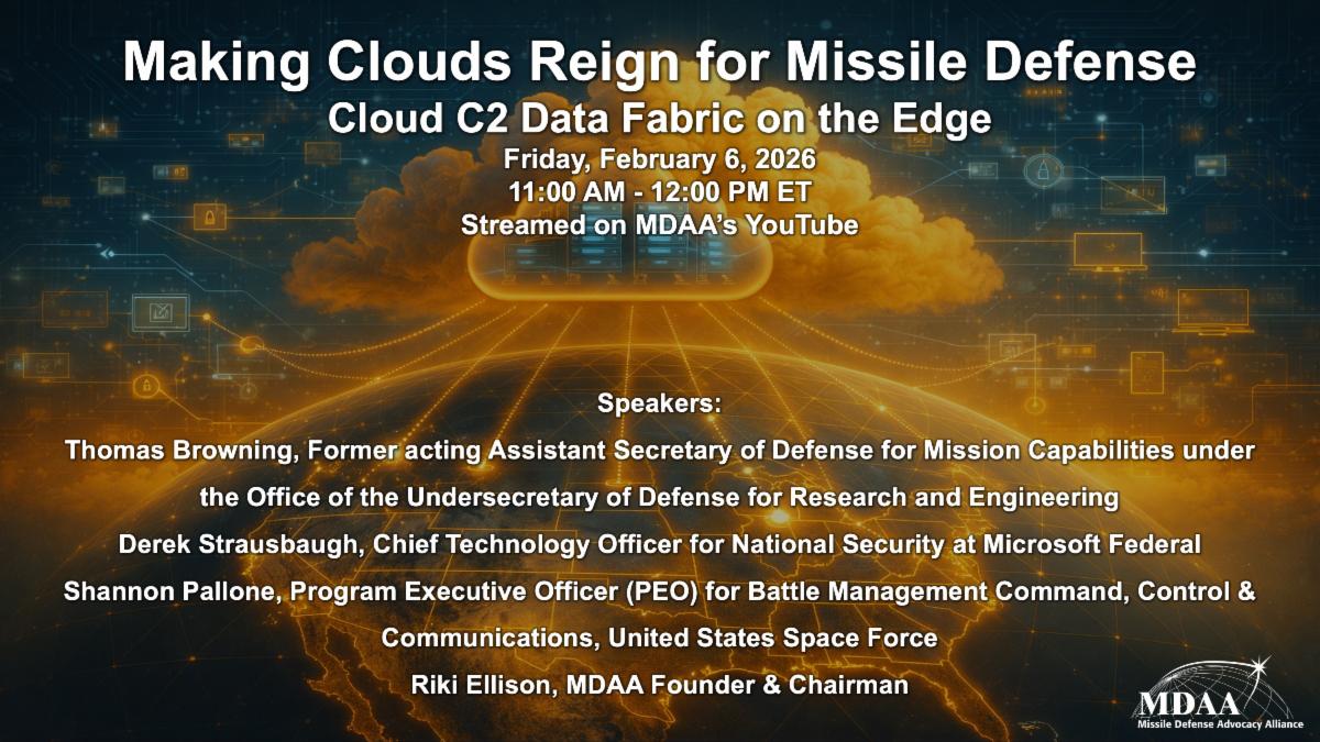 Please join us on Friday, February 6, 2026, at 11:00 AM (ET) for our 90th congressional roundtable virtual, Making Clouds Reign for Missile Defense.
