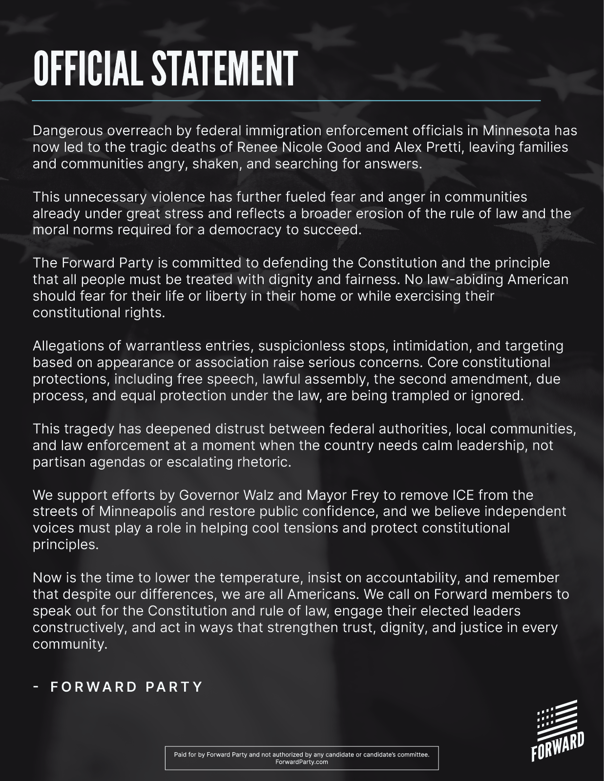 Forward Party and not authorized by any candidate or candidate's