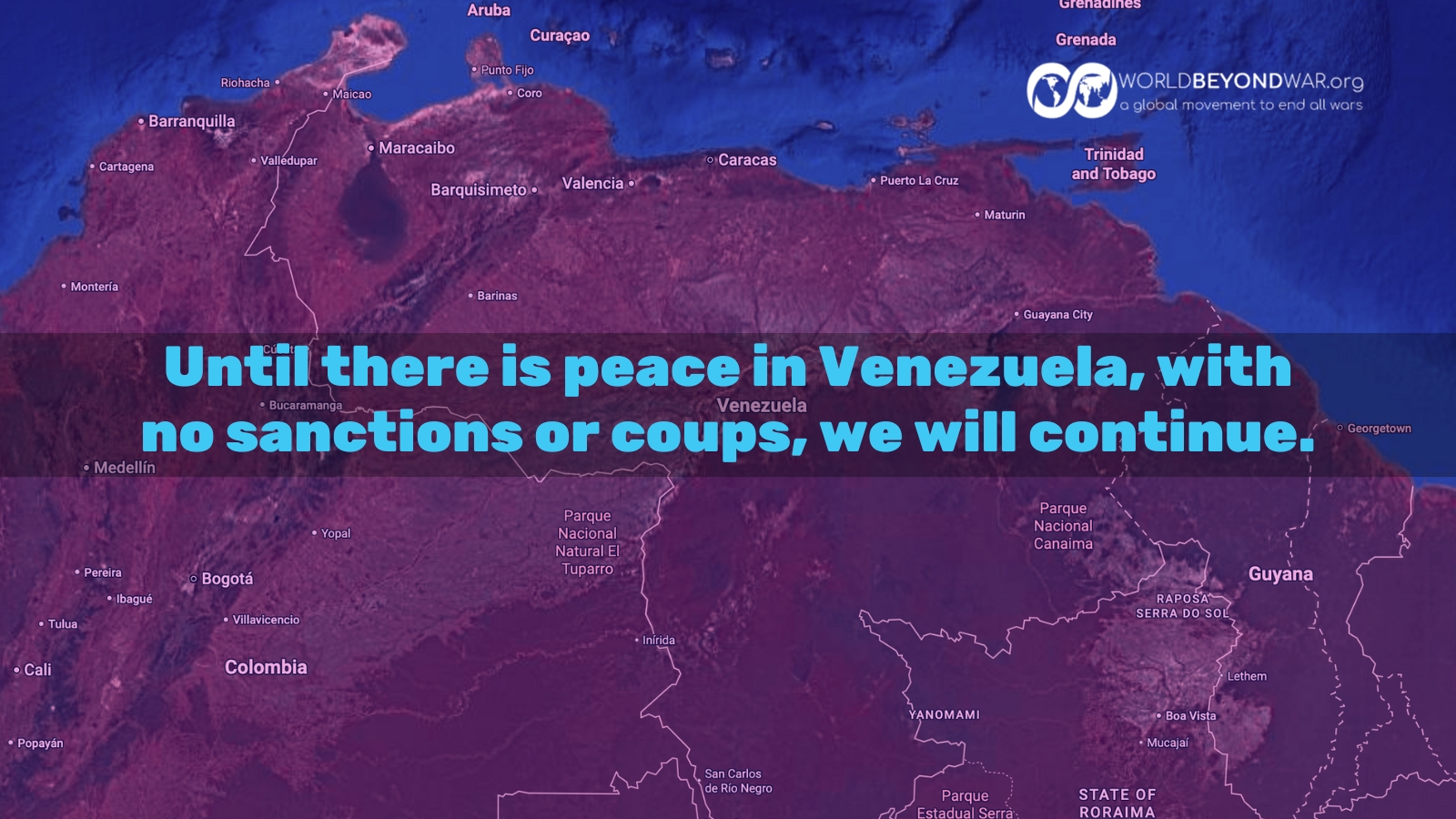 Now we're sending our executive director David Swanson and Latin America organizer Gabriel Aguirre, with friends and allies, to Venezuela, to build solidarity with the people of Venezuela and work for peace. You'll see reports of all of our activities soon.