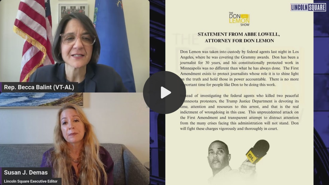 DON’T LOSE ACCESS! Upgrade Now to get all-access for 35% off our regular subscription rate. Offer ends January 31st. When you upgrade, you’re making a direct investment in defending democracy by helping amplify the facts and fueling the pro-democracy media machine needed to combat the MAGA lies. Congresswoman Says 'Hell No' on ICE Funding & Kristi Noem 'Must Go' | Rep. Becca Balint Joins Susan J. Demas"They need us to be keeping the receipts from everything that's happening because people need to be prosecuted."Vermont Congresswoman Becca Balint has feared these moments for a long time. We have an administration that is invading its own cities, bullying state and local governments, and arresting journalists, as the Department of Justice this morning announced the arrest of Don Lemon and several others for documenting a protest at Cities Church in St. Paul, Minnesota. The Democrat joined Susan J. Demas and reacted to this morning’s breaking news. “Don Lemon was there as a member of the press. And more and more, we need independent members of the press to be reporting. It is absolutely chilling that they are not just going after our First Amendment rights, freedom of assembly, freedom of speech, going after our second and fourth amendments, but now, now directly targeting the press overtly. And they believe that they will never be held to account.” The country is still on edge after last weeks murder of Alex Pretti, the V.A. nurse who was murdered by federal agents last week in Minneapolis. Congresswoman Balint has been vocal in her opposition to funding the tactics of this agency, saying, “Hell no!” when she voted for the measure in the House. She’s called for the ouster of both DHS Secretary Kristi Noem and Stephen Miller. “I think long term, we’re going to need a truth and reconciliation commission for this administration and all the lawlessness and all the corruption and the grift and all the ways in which Americans have had their rights absolutely violated by this administration and all the accomplices,” she said. Watch more of what Congresswoman Balint had to say about being part of the Jack Smith hearing last week, the Trump DOJ’s raid on the Georgia election office, and much more here on Lincoln Square. Not ready to subscribe? Make a one-time donation of $10 or more to support our work amplifying the facts on social media, targeted to voters in red states and districts that we can help flip. Every $10 reaches 1000 Americans. The Truth needs a voice. Your donation will help us amplify it. |