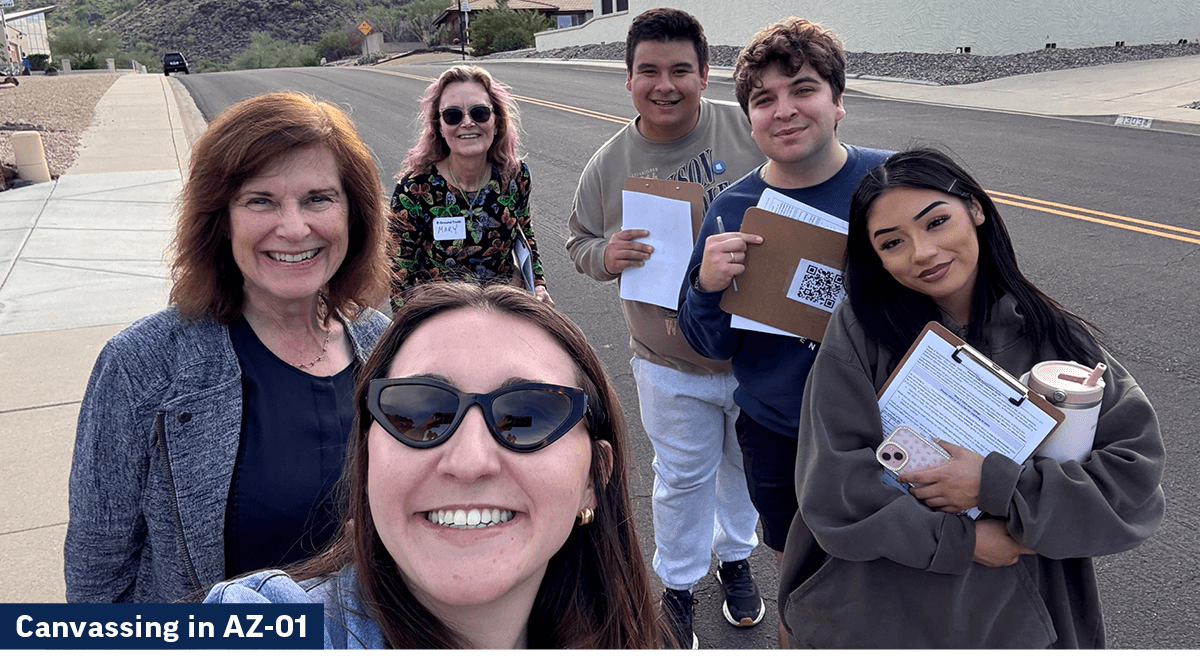 I’m Zack Malitz, the Managing Director here at Swing Left. Last weekend, Swing Left volunteers launched the first in-person Ground Truth canvasses of the year in Oregon’s 5th and Arizona’s 1st congressional districts, in addition to a virtual Ground Truth phone bank that called voters in Nebraska’s 2nd.