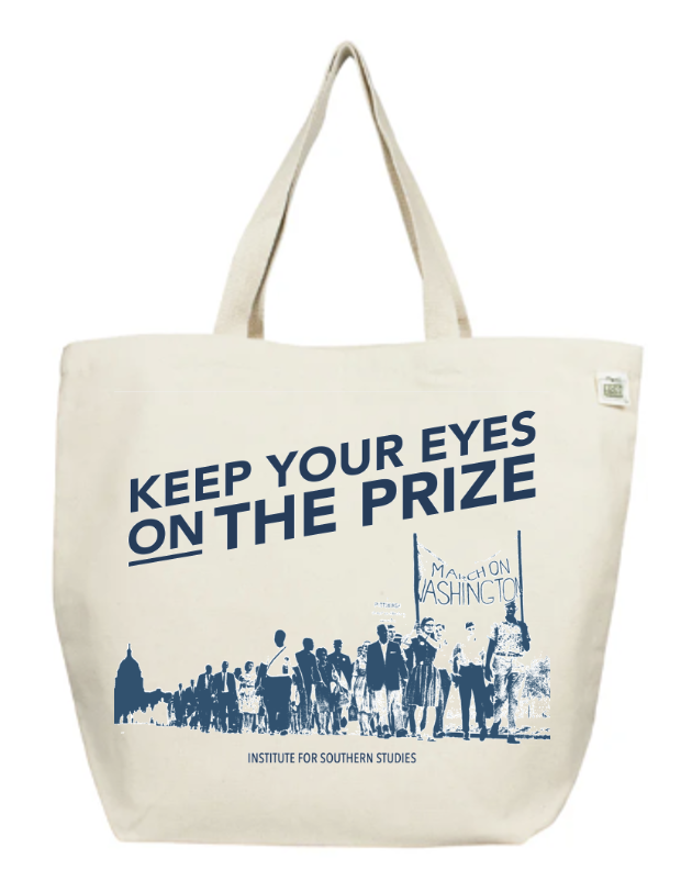 Every dollar will support our hard-hitting investigations and research that fuels democracy and justice across the South. And right now, our work to hold the powerful accountable and support movements for change is more urgent than ever. Thank you for standing with us at this critical moment, and supporting our work for a better South and future. Chris Kromm, Executive Director P.S. - Act now: Donate $100 or more today, or become a monthly Institute sustainer, and you can still receive a beautiful organic tote bag with an iconic slogan of the civil rights movement, "Keep Your Eyes on the Prize!" | |