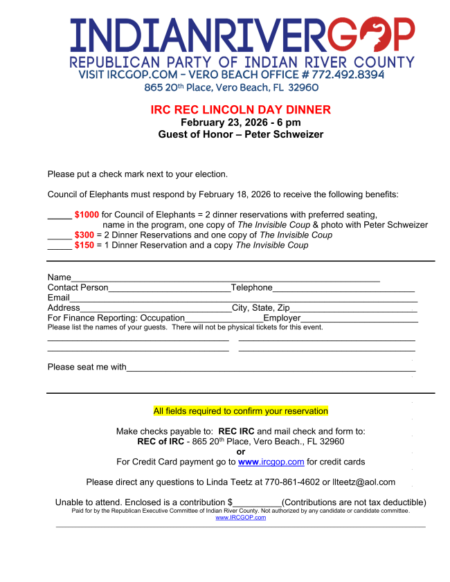 Indian River County Republican Executive Committee | 865 20 Place | Vero Beach, FL 32961-6569 US