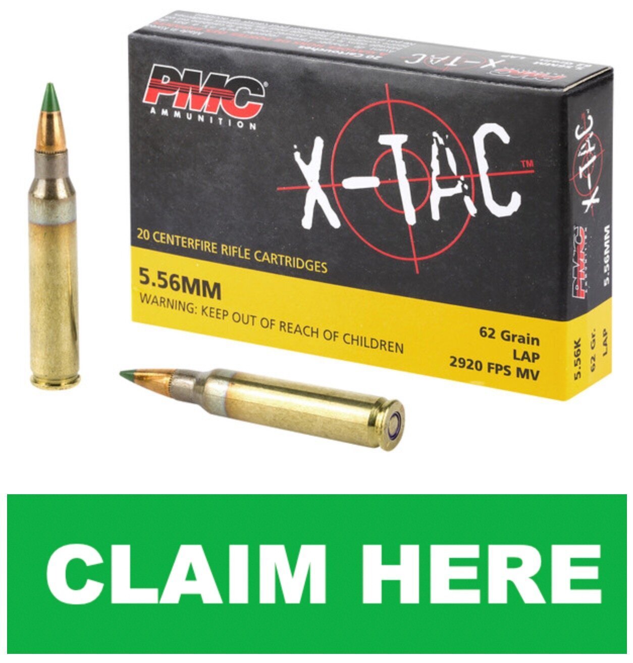 Tactical USA has a batch of PMC 5.56 NATO 62 Grain—great stuff, light armor piercing, brass case, reloadable, 2,920 fps—and they want to send you a box for FREE.