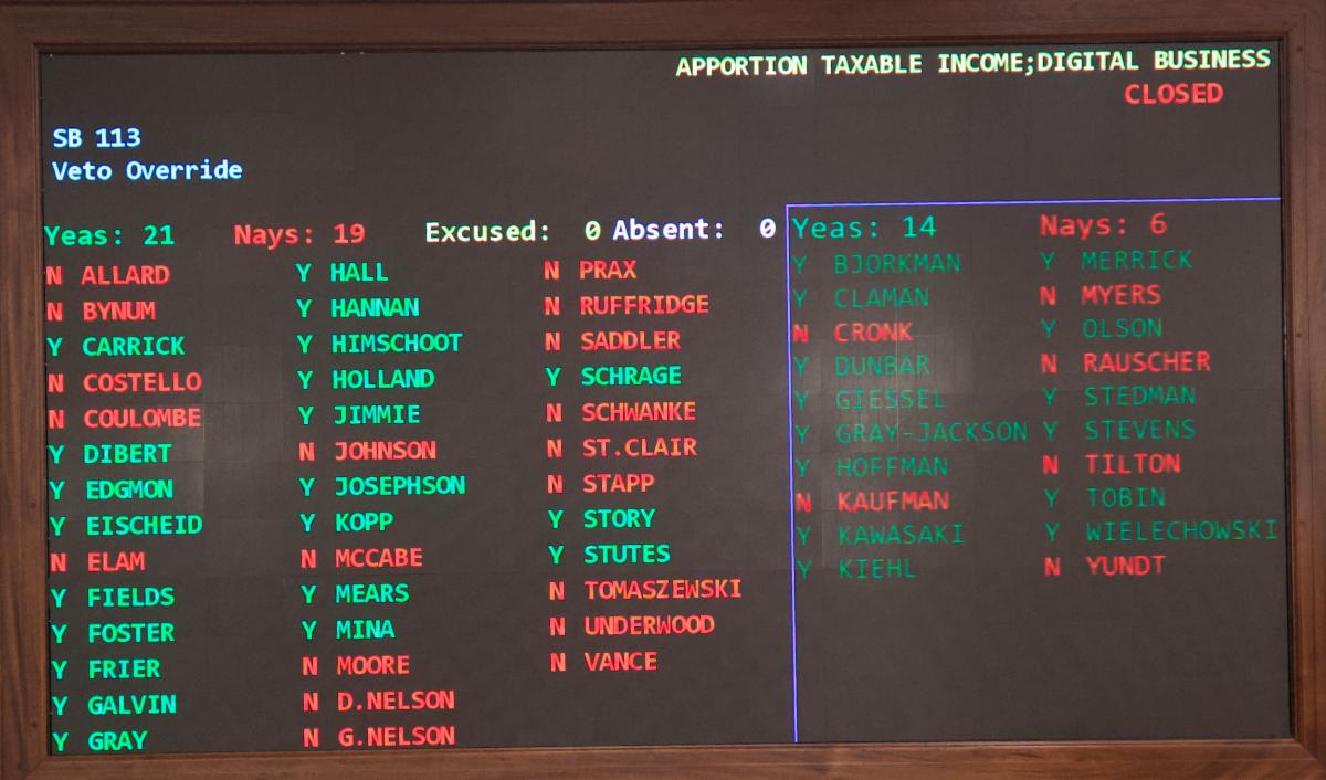 SB 113, Appropriation Taxable Income; Digital Business was introduced last session as a revenue generating bill whose purpose was to collect taxes from internet businesses which are housed outside of Alaska but sell their products within the state. Nearly 40 other states participate in this digital business tax apportionment because the revenues come back to the states who are party to the same legislation.