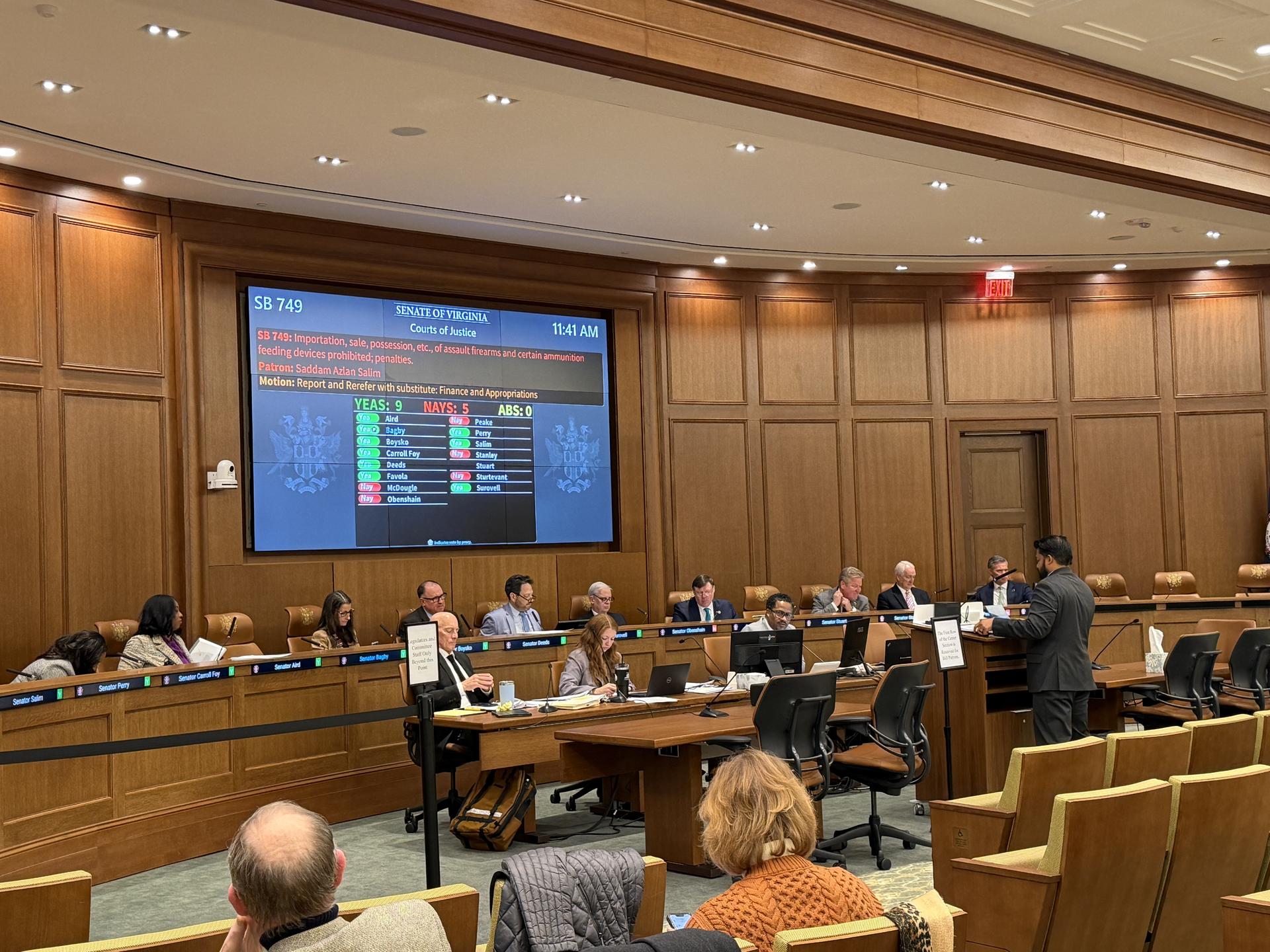 On Monday morning, SB749, my bill to ban assault weapons in the Commonwealth, reported out of the Courts of Justice committee on a party line vote. It will have its next hearing in the Finance & Appropriations committee before it goes to the full Senate for a vote. |