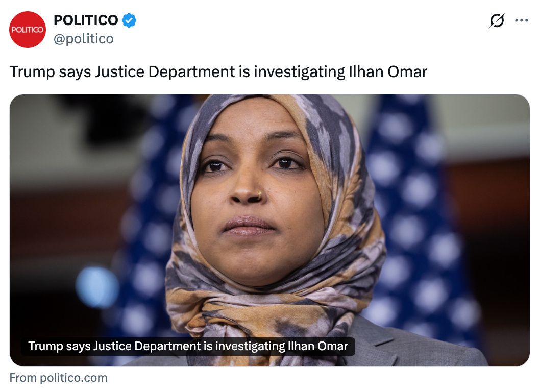But this is coming at a critical time. ICE is creating chaos and hurting and killing people here in Minneapolis. Ilhan was attacked at a town hall on Tuesday. Tensions are high, and the Trump administration is choosing to escalate with a sham investigation. We have to send a message that this will not stand.