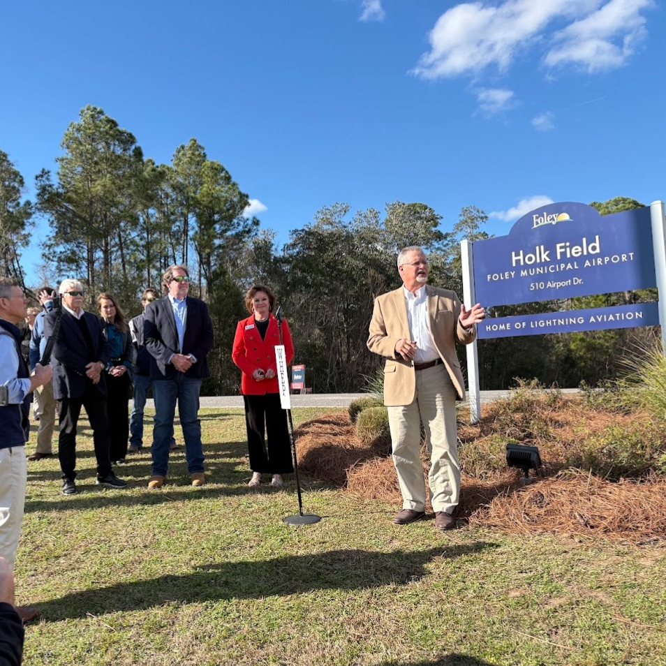 Members of my staff attended the dedication of the Holk Field Foley Municipal Airport. Arthur Holk served five terms as mayor of Foley from 1976 to 1996. My staff was thankful for the opportunity to attend and honor the life and legacy of Mayor Holk.