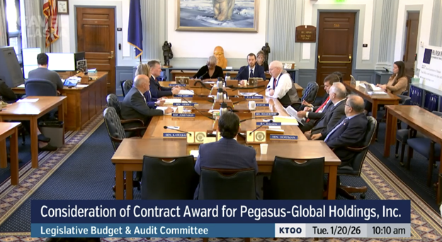 The Legislative Budget & Audit Committee held its first meeting of the session on Tuesday, January 20. During the meeting, members considered and approved a contract award for Pegasus-Global Holdings, Inc. This consulting support will help strengthen legislative oversight and provide timely analysis of the Alaska LNG project. As Alaska considers investments and long-term commitments, it’s especially important to keep a close eye on risk, costs, and transparency so Alaskans and the State Treasury are protected as the project moves forward – Pegasus will help.