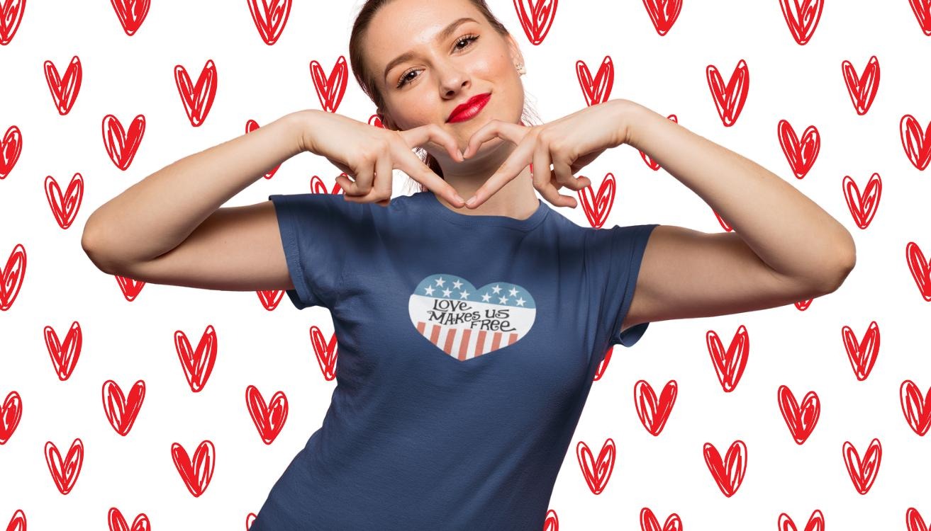 Love Makes Us Free is a value we live by. These made-in-America, union-printed shirts are one way people show up for the work and for each other as we organize for a Free America.