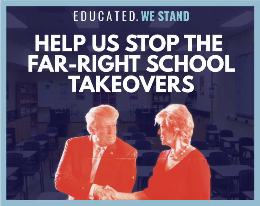 |  JOHN, A new month is here — Trump and his extremist allies aren’t slowing down. They’re doubling down.  Extremist groups understand something important: if they can control public education, they can shape the future. That’s why they’re recruiting candidates, flooding low-turnout school board races with dark money, and pushing policies that punish inclusion, honesty, and critical thinking. As we begin February, I’m asking you to help us push back and put resources towards our nationwide organizing efforts. If you’re able, please contribute today to help Educated We Stand protect public education and defend democratic values in communities across the country. If you've saved your payment information with ActBlue Express, your donation will go through immediately: New month, but the same fight — and we’re not backing down. Thank you for standing with us, Karla Hernández-Mats Paid for by Educated. We Stand. |