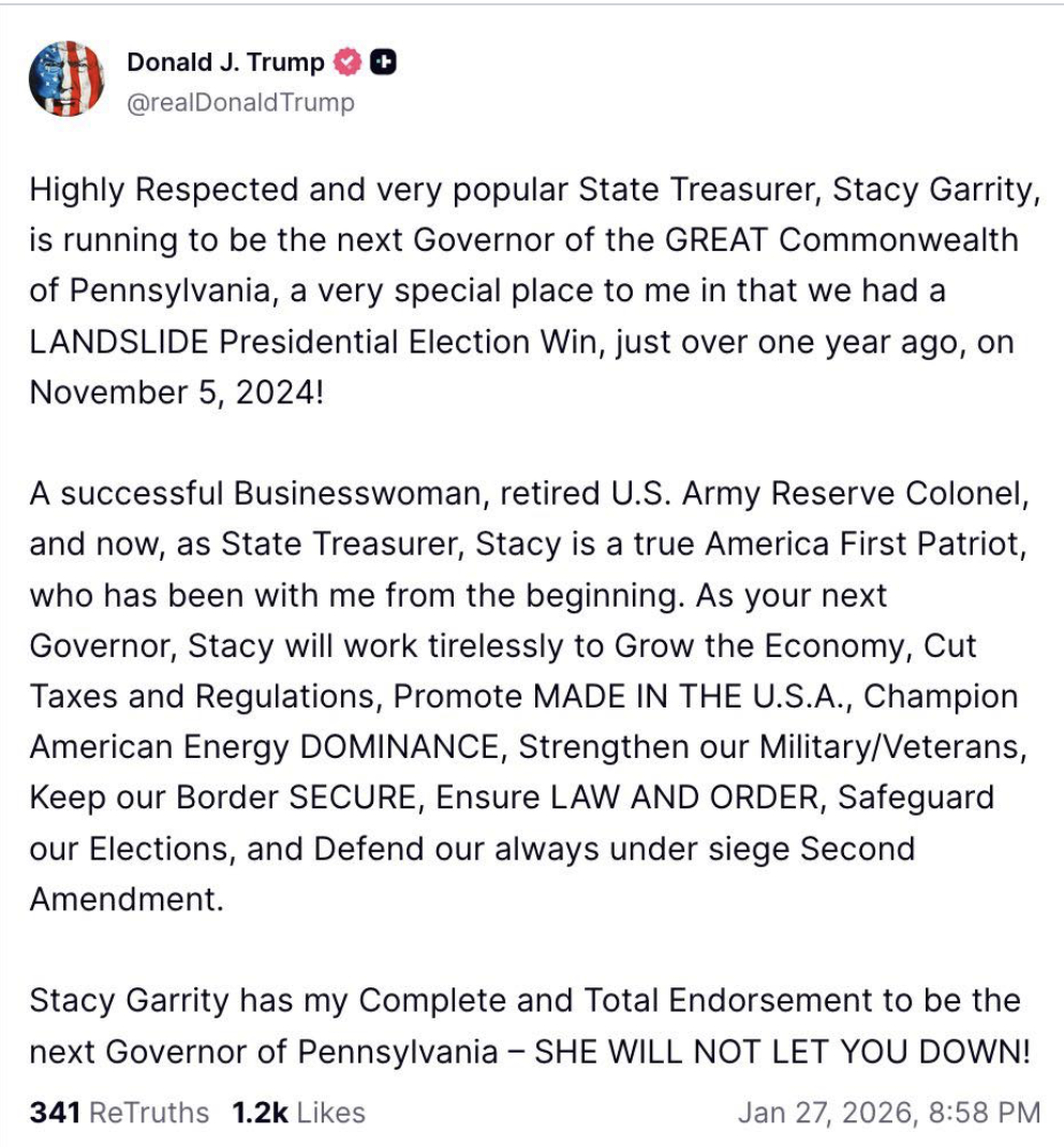 endorsement of Stacy Garrity for Governor. I endorsed Stacy upon her