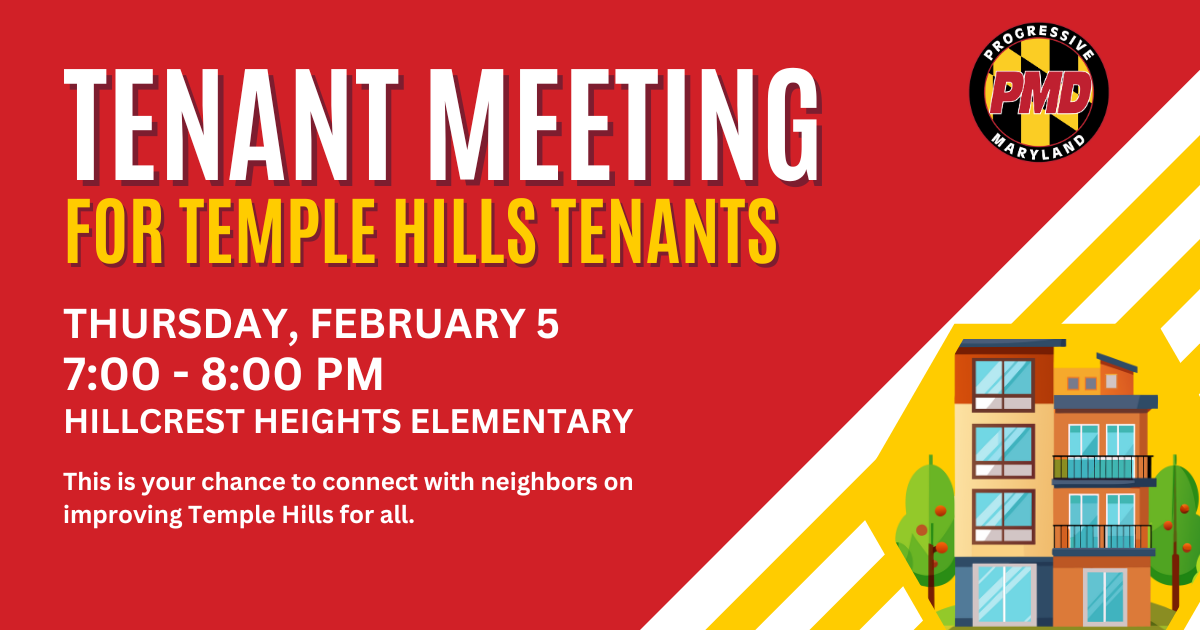 We’re bringing neighbors together in Temple Hills to take the next step toward safer, more affordable, and more livable housing. On Thursday, February 5, renters and homeowners are invited to join a community organizing meeting where we’ll officially establish the Temple Hills Tenant Association, elect local leaders, and begin planning our first collective action to address ongoing housing and community concerns. This is a chance to connect with neighbors, share your experiences, and help shape the future of housing conditions in Temple Hills.