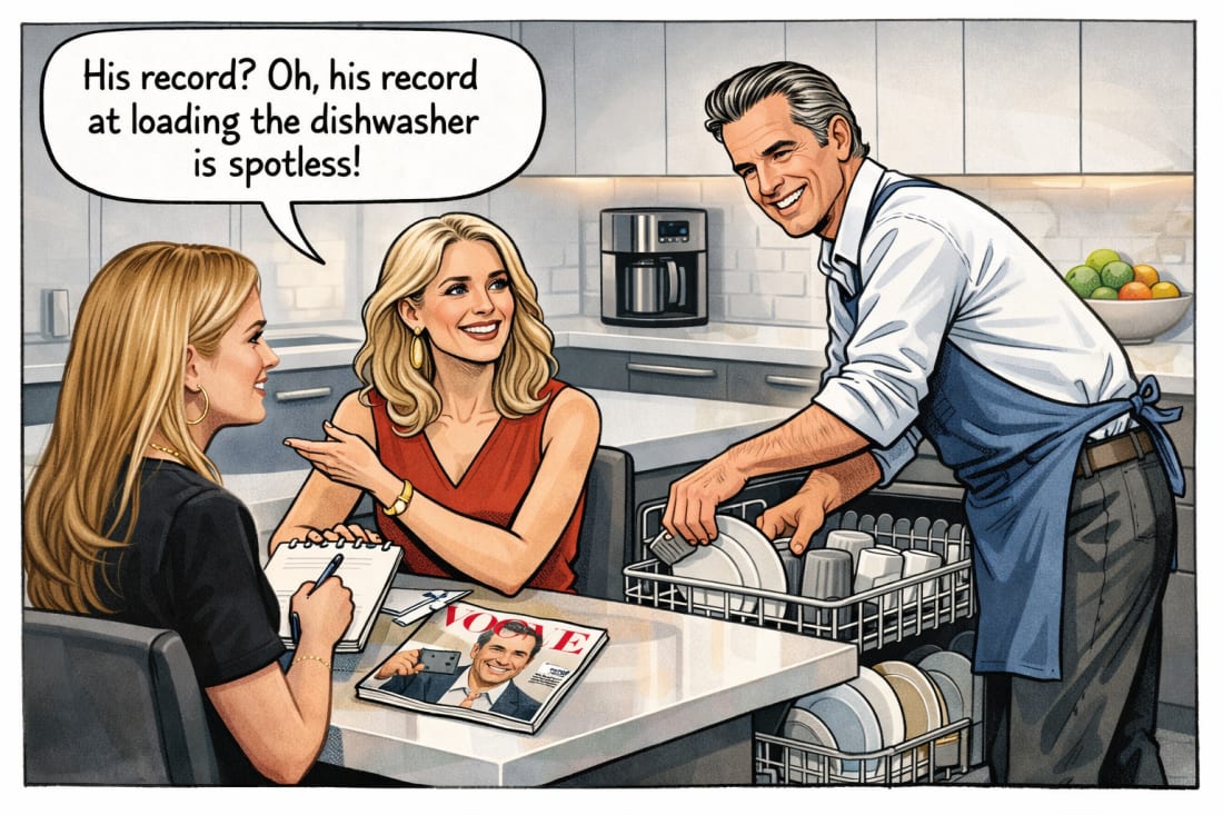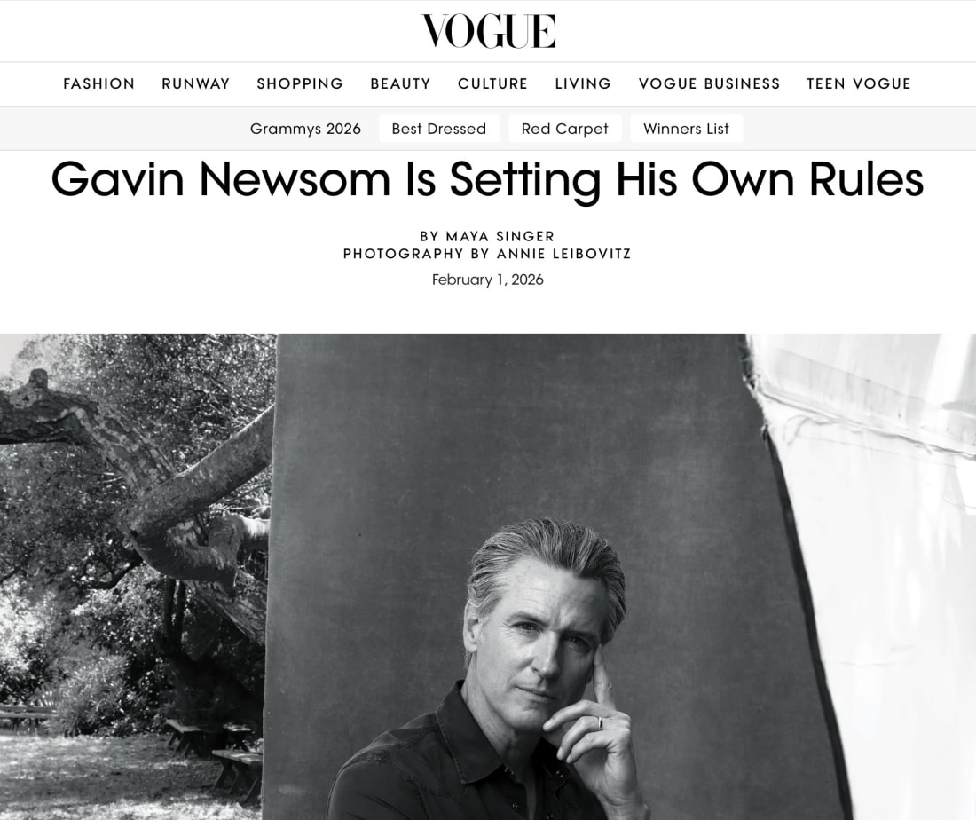 This content is available for free to all subscribers. But you really should consider a paid subscription. This unlocks our afternoon e-mails, our Saturday “What is Jon Reading” e-mail, and analysis on breaking news. Normally a subscription is a modest $7 a month or just $70 for the year. Governor Or Cover Model? Vogue’s Love Letter To GavinGlossy photos, glowing prose — and barely a word about California’s record(Earlier this week Vogue Magazine posted up a special profile piece on Gavin Newsom. I read it so you do not have to, but taking a few minutes to read it before reading my critique.) When a Profile Reads Like a Publicity PlanProfiles of powerful political figures are supposed to test reputations, not reinforce them. Yet Vogue’s new feature on California Governor Gavin Newsom reads less like independent journalism and more like a companion piece to his forthcoming political memoir. The book has not yet been released, but advance access and early national coverage signal a coordinated media rollout built around its themes and personal narrative. Vogue’s profile follows that same memoir-style emotional arc and image-building approach. 1. Celebrity Treatment Instead of Political ScrutinyThe article opens not with policy or record, but with aesthetics: “Let’s get this out of the way: He is embarrassingly handsome, his hair seasoned with silver, at ease with his own eminence…” That is the language of a fashion spread, not an assessment of a governor’s governing record. Political journalism typically begins with consequences. Public relations begins with presentation. 2. Narrative Framing Casts Him as a HeroReaders are told that “the only thing standing athwart Donald Trump’s will to power is Gavin Newsom.” Journalism does not anoint protagonists; it tests claims. This framing casts him as a defender of democracy before examining whether his governance supports that role. 3. Domestic Intimacy Replaces Public AccountabilityInstead of decisions, we get dishwashers. His wife, Jennifer Siebel Newsom, offers this detail: “When he cooks, he cleans as he cooks. Dishes in the dishwasher—though I don’t always agree with how he puts them in.” These anecdotes are not meaningless, but they substitute for signals of conscientiousness as evidence of sound judgment. Time spent on dishwashers is time not spent on decisions. 4. Ambition Is Normalized, Not ExaminedThe profile references “his all-but-announced 2028 presidential run.” Journalism asks whether political elevation is earned. Promotional storytelling assumes it is. Treating ascent as inevitable sidesteps the harder question: what in his governing record justifies national advancement? 5. Elite Connections Are Mentioned, Not InvestigatedWe are told that Salesforce CEO Marc Benioff is godfather to Newsom’s eldest daughter. His long-standing ties to the Getty family and Bay Area power networks are also described. Elite access is not disqualifying, but journalism’s job is to examine its implications. Here, those relationships are presented as color rather than influence. 6. Emotional Narrative Softens the SubjectNewsom reflects, “When language eludes you, identity eludes you, too. You start trying on costumes to see if they’ll fit.” That is memoir logic: self-interpretation in search of meaning. Journalism’s task is to connect personal history to public performance. Here, empathy precedes scrutiny. 7. The Tone Reads as ProtectiveThe profile describes his memoir as something that “sets him up as someone who fights, someone who dreams big, someone who sweats the details, someone with a desire to serve.” That is the language of a campaign mailer, not an interrogative profile. The tone throughout reads as protective, consistent with a promotional genre rather than a scrutinizing one. 8. California’s Record Is the Missing Character in the StoryWhat makes the omissions striking is that California’s governance record offers no shortage of measurable outcomes a rigorous profile might examine. After thousands of words about personality, the results of his governorship barely appear. California leads the nation in homelessness and housing costs. Residents and businesses continue to leave. The high-speed rail project remains mired in delays and overruns. Billions were lost to unemployment fraud. Energy prices remain among the highest in the country. A profile that sidelines outcomes in favor of image informs readers about the persona more than the performance So, Does It Matter?Voters struggle to evaluate leaders when coverage emphasizes positive spin over documented record. This article functions less as reporting than as narrative reinforcement tied to a national political rebrand and a book launch. Vogue says that they are a publication that is, “…dedicating itself to a celebration of groundbreaking image-making, great journalism, and the discovery of new talent” – clearly the emphasis is on image-making. Memoirs exist to shape legacy. Journalism exists to test it. Bonus Column! More Revealed About Gavin…My longtime friend and former California Republican Party Chairman Tom Del Beccaro has watched California politics up close for decades. In this column, he examines the carefully constructed life story Gavin Newsom is promoting ahead of an expected presidential run and contrasts it with a governing record that tells a very different story. Del Beccaro points to the wealth, connections, and policy outcomes that complicate the governor’s preferred narrative, arguing voters deserve a fuller picture before buying into a memoir-ready image crafted for a national audience. If you enjoy this column, go seek out Tom on Substack. He writes there a lot. You’re currently a free subscriber to So, Does It Matter? California Politics! For the full experience, upgrade your subscription. See how much more you get with an inexpensive, paid subscription, but clicking the button below! Support me i