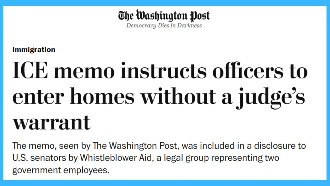 From Warrants to Whims: ICE’s New Authority to Enter Homes on Trump’s Say-SoAdministrative warrants turn home invasions into internal paperwork—and erase a core safeguard of liberty.By David Shuster The latest memorandum from the Trump administration’s Immigration and Customs Enforcement Agency (ICE) cheerfully announces with bureaucratic calm what once would have been answered by revolutionary era muskets: federal agents may enter private homes without a warrant signed by a judge. According to internal documents disclosed by whistleblowers and reviewed by multiple news organizations, including The Washington Post and the Associated Press, this memo directs ICE officers to rely on internal “administrative warrants” — not warrants signed by a neutral judge — to forcibly enter residences to make arrests. In practical terms, it gives the Trump administration license to break down doors without the traditional judicial oversight that has long been a cornerstone of American liberty. This is not merely a policy adjustment. It is a confession—of contempt for the U.S. Constitution and for the intelligence of the American public. The Fourth Amendment states in plain English that the government may not search or seize without a warrant issued by a neutral magistrate. It was written by our nation’s founders – people who had experienced firsthand the charms of having British agents, on behalf of King George the third, kicking in doors based on vague suspicions. The colonists found these encounters repugnant. The 4th amendment was their way of saying: never again. ICE’s memo is the modern Trump reply: just watch us. The administration’s defenders insist this is all perfectly legal. The ICE agents, they say, carry “administrative warrants.” These are documents produced by Trump’s executive branch, approved by Trump’s executive branch, and executed by Trump’s executive branch. The neutral judge, part of that meddlesome judicial branch, is removed entirely. It amounts to government by self-approval, a system that would delight every petty despot from Julius Caesar to that narcissistic night manager at the local shopping mall. To be clear, the controversy here is not about whether the Trump administration or any other should enforce immigration law. The United States, like all nations, has the sovereign right to enforce its borders and ensure compliance with immigration rules. But enforcement must proceed within the bounds of the U.S. Constitution. The Trump team distinction between a real warrant and an administrative one is not legal hair-splitting. It is huge. A judicial warrant is an interruption. It forces the government to explain itself to someone who does not take orders from it. An administrative warrant is a permission slip the government writes to itself, like a child excusing his or her own absence from school. The fact that such a document is now offered as justification for forced entry into a home tells you everything you need to know about the Trump administration’s view of constitutional limits: the limits are optional, situational, and are best handled internally. Naturally, the Trump goons are claiming this new policy is necessary. Immigration enforcement, they insist, requires speed, surprise, and force. If only we remove this one pesky safeguard, says MAGA world, order will finally reign. It is the same argument that has justified every overreach since governments were invented. And it’s been wrong every time. Under Trump, what is most revealing now is not the brutality of the policy but its smugness. There is no apology and no acknowledgment or regret that something precious is being taken away, The memo treats warrantless entry as a minor procedural tweak, like changing office hours. The casualness is remarkable. It assumes that members of the public are so exhausted, distracted, or fearful that we will accept, as our new normal, armed agents entering our homes without a judge’s say-so. Mark my words: This new Trump policy will not remain confined to immigration related raids. Once the principle is established that the executive branch may decide, on its own, when homes may be entered by force, the precedent will be set. Today the Trump administration agents will target undocumented migrants. Tomorrow, the Trump fascists will target anyone inconvenient enough to fall within the expanding MAGA definition of “enforcement necessity.” Journalists? Observers? Political opponents? Uppity citizens? Watch out. Also, there is the matter of human reality. Homes are not abstractions. They contain families, children, the elderly, and the innocent. They are places of sleep, argument, refuge, and dignity. Authorizing a home invasion without independent oversight is trading a constitutional right for a third-world police tactic. This is not law enforcement. It is a declaration that the Trump team’s convenience outweighs everybody’s personal security or liberty. In response to the ICE memo and aggressive new tactics, lawmakers have already begun to argue and posture. Many democrats and a few republicans are speaking out against the latest Trump erosion of our constitutional rights. But in our divided Congress, there will be no true oversight of the Trump administration. So, at some point, the courts will be asked to intervene and clean up the mess. Inevitably, the courts will rule in favor of the Constitution and demand that ICE stop the administrative warrant-based raids and require judicial warrants instead. But by then, a lot of people apprehended will have already been disappeared. In the meantime, the administration continues to test how much constitutional rot the public is willing to tolerate. This has become the defining experiment of the Trump era: whether the Constitution can survive the tyrannical ambitions of Donald Trump, J.D. Vance, and Stephen Miller. This episode should serve as a wake-up call. Whether you agree or disagree with the