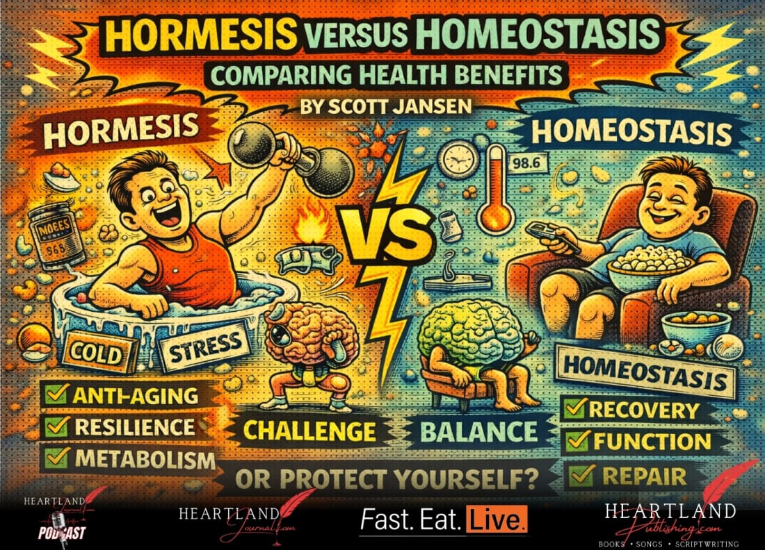 Hormesis versus homeostasis: Comparing Health Benefits by Scott JansenIf kids built their brains out of what they actually eat, most would be running on frosting instead of fat.As health and fitness coaches with three decades of experience, we’ve spoken a great deal about adaptation of the body. Everything your body is exposed to is stimulus to create a response. From popular trends like cold water immersion, infrared light and sauna, to eating natural foods like spicy peppers, they all create change in the body. This hermetic response is what makes our bodies healthier and stronger. This is why we often say that hermetic adaptation is like medicine. It’s very effective if given in the correct dose. Maintaining optimal health is a complex and dynamic process, influenced by numerous factors. Two key concepts that play a crucial role in understanding health and well-being are hormesis and homeostasis. These concepts describe different mechanisms through which the body responds to stressors and strives to maintain balance. While both hormesis and homeostasis are essential for overall health, they differ in approach and benefits. The health benefits of homeostasis lie in its ability to maintain stability and prevent extreme fluctuations in bodily functions. By regulating variables such as body temperature, blood sugar levels, body weight, and pH balance, homeostasis promotes the optimal functioning of bodily systems. This stability ensures that cells receive the necessary nutrients, waste products are eliminated, and organs can perform their specific functions efficiently. Ultimately, homeostasis plays a vital role in preventing diseases and maintaining overall well-being. Hormesis, on the other hand, offers unique health benefits by challenging the body and triggering adaptive responses. Various studies have shown that exposure to mild stressors, such as exercise, heat, cold, or even certain substances, can lead to improved physiological function, increased longevity, and enhanced resistance to diseases. For example, regular exercise induces hormetic responses in the body, strengthening muscles, improving cardiovascular health, increasing bone density, and boosting the immune system. Similarly, short term controlled exposure to cold temperatures, as in cryotherapy, has been shown to reduce inflammation, improve mood, and enhance overall well-being. Certain foods can support this process as well, by promoting positive physiological changes. The following are some examples of such foods: Antioxidant-rich foods: Antioxidants help to reduce oxidative stress in the body, which can stimulate adaptive responses. Berries, dark leafy greens, nuts, and colorful vegetables are all high in antioxidants. Omega-3 fatty acids: These healthy fats have been shown to have anti-inflammatory properties and can support the body’s adaptive response. Sources include fatty fish (salmon, mackerel), flaxseeds, chia seeds, and walnuts. Cruciferous vegetables: Vegetables like broccoli, cauliflower, cabbage, and Brussels sprouts contain compounds that support detoxification processes in the body. They can enhance the body’s ability to adapt to stressors and maintain optimal health. Turmeric: This spice contains curcumin, a potent anti-inflammatory compound. It can be used in cooking or taken as a supplement. Green tea: Rich in polyphenols, green tea has antioxidant and anti-inflammatory properties. Adaptogenic herbs: Certain herbs, known as adaptogens, have been traditionally used to enhance the body’s resilience to stress. Examples include ashwagandha, Rhodiola rosea, and ginseng. These herbs can be consumed as teas, extracts, or in supplement form. Fermented foods: Foods like yogurt, sauerkraut, kimchi, and kefir contain beneficial bacteria that support gut health. A healthy gut microbiome is crucial for overall health. While both hormesis and homeostasis are important for maintaining health, we believe you should focus on ways to increase your hormetic responses. Be in nature, exercise, and eat a variety of the foods above to live your best life. For an individualized meal plan or higher level nutrition coaching, contact us at [email protected] https://fasteatlive.com/ https://heartlandjournal.com/ You're currently a free subscriber to Heartland Journal ®. For the full experience, upgrade your subscription. |