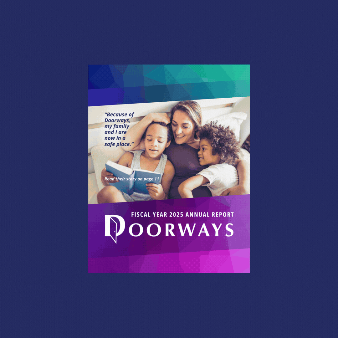 | | Doorways' 2025 Annual Report | | In 2025, we opened our doors to more survivors than ever before, sheltering a record-breaking number of 150 individuals out of harm's way. The reality is, however, that even with this great milestone, the need continues to grow. We are deeply grateful to you, our partners, whose generosity powers Doorways' work. Your investment in Doorways ensures that we can continue to provide safe harbor, healing, and hope to all survivors who need us. | | |
