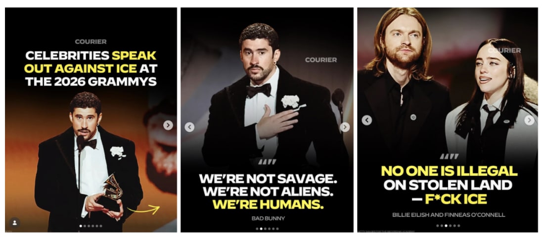 COURIER exposes ICE's expansion plans and shines a light on the people fighting backMegyn Kelly's B.S., the 2026 Grammys, and moreHi all — Thank you for being a part of this amazing 50,000+ community! This week, COURIER CEO and publisher Tara McGowan sat down with Minnesota Attorney General Keith Ellison and Sunrise Movement’s Executive Director Aru Shiney-Ajay for Gloves Off to talk about what’s happening on the ground in Minneapolis. Now let’s get into today’s roundup! - Charlotte Robertson P.S. If you haven't already, give us a follow on social (like and subscribe to our YouTube, Instagram, TikTok, Bluesky, Threads, and X/Twitter) to make sure you don't miss anything. All 23 industrial warehouses ICE wants to turn into detention ‘death camps’COURIER’s national correspondent Camaron Stevenson takes a look at sites ICE is seeking to secure and shares a searchable map detailing each proposed site and its current status in Below the Beltway. Megyn Kelly is Rush Limbaugh in dragIs Megyn Kelly just Rush Limbaugh in drag? In this week’s edition of Stop the Presses, author Mark Jacob takes a look at the similarities between the two conservatives’ rhetoric and how Kelly’s show taps into toxic masculinity. Minneapolis has the internet’s attention. Will Democrats finally do something with it?Minneapolis has the internet’s attention ... so will Democrats finally do something with it? Executive Director of Priorities USA Danielle Butterfield takes a look at how Democrats can meet the moment for COURIER’s FWIW. Join COURIER and 3.14 Action for a special virtual eventThis live conversation on March 12th will examine how political choices are reshaping healthcare access ahead of the midterms. We’ll break down how Trump, RFK Jr., and the broader MAHA agenda are impacting public health, who benefits, and what’s at stake for families across the country. You don’t want to miss this! COURIER’s How Is This Better? was nominated for the 2026 Ambies Awards! The show is part of a great lineup of podcasts in the running to win “Best Emerging Podcast.” The winner will be announced during the award ceremony on February 6th. On COURIER's TikTok, you can see the top post of the week here with 10.6+ million views and 1.2+ million likes. On COURIER's Instagram, you can see the top post of the week here with 5.5+ million views and 112,000+ likes. Living in Trump’s America is starting to feel like Groundhog DayTrump is using the same tactics over and over again … so much so that we’re starting feel like we’re in the movie Groundhog Day. COURIER contributor Allan Piper takes a deep dive into Trump’s tired strategy. Celebrities speak out against ICE at the 2026 Grammy AwardsAt the 2026 Grammy Awards, many celebrities used their moment in the national spotlight to speak out against Trump’s ICE and stand up for immigrant communities. COURIER takes a look at who spoke out. ICE laughed at son who tried to bring his dad life-saving medicationA Minnesota teenager told MS Now that ICE laughed at him when he tried to bring his father life-saving heart medication after he was detained. The young man’s father was arrested at the McDonald’s where he works. Ready to stand up to the Trump admin? The resistance shops at COURIERPeople across the country are gathering together to stand up to the Trump administration. Use code “FCKICEBUNDLE” to receive $5 when you purchase both COURIER’s F*ck ICE mug and F*ck ICE t-shirt. ICE is placing a detention facility in Surprise — here’s what our readers thinkICE announced last week that it is placing a 1,500-bed detention facility in Surprise, after recently paying $70 million for a 418,400-square-foot warehouse. COURIER’s Arizona outpost, Copper Courier, has the story. Elon Musk’s Boring Company evades millions in Nevada safety finesThe company has faced more than 800 environmental and safety violations on its Las Vegas tunnel project in the last two years, according to an investigation by ProPublica. COURIER’s The Nevadan has the story. Virginia expanded school vouchers — here’s what that means for public schoolsAs Virginia expands private school vouchers through a federal tax credit, educators are raising questions about access, accountability, and who benefits, COURIER’s Virginia outpost, Dogwood, reports. |