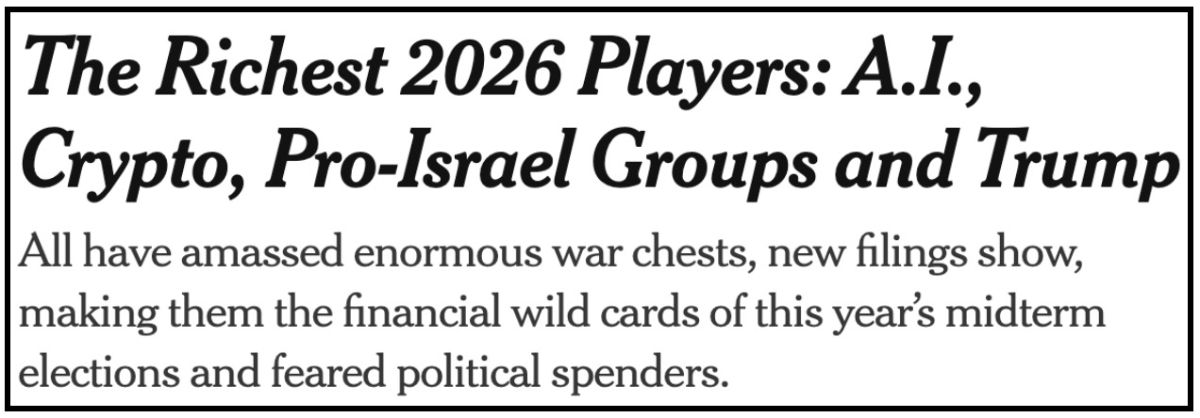 Just this week, The New York Times laid it out plainly: the richest forces in politics — A.I., crypto, pro-Israel super PACs, and Trump’s network — are stockpiling massive war chests to shape the 2026 elections.