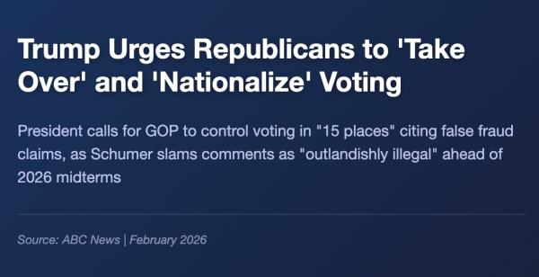 There it is. Trump and his party are so down in the polls with just months to go until the midterms that Trump's already saying he wants control of every election.
