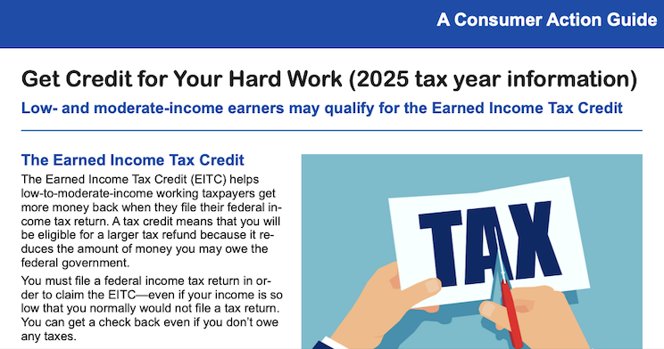 Unfortunately, approximately 20% of eligible households fail to claim the EITC each year, leaving billions of dollars in benefits unclaimed. This is largely because many eligible workers are simply unaware they qualify for the credit. Consumer Action’s free, multilingual (English, Spanish, Chinese, Vietnamese and Korean) guide to the EITC not only helps filers claim the dollars they're entitled to, it can be used by community-based organizations as a tool to make more workers aware the credit even exists.