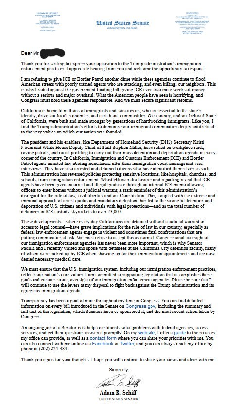 Senator Adam Schiff’s recent response to a concerned California constituent exposes a familiar pattern from the political left: deflection, disdain, and an outright refusal to confront reality. The constituent did not make an unreasonable demand. Contrary to what Senator Schiff’s letter suggests, the concerned Californian contacted their U.S. senator—using ACT for America’s legislative action tool—to urge lawmakers to fund the Department of Homeland Security and prevent a government shutdown—emphasizing the vital role Immigration and Customs Enforcement plays in protecting American communities. Senator Schiff’s response was revealing—and deeply troubling. Rather than address these public safety concerns, he openly refused to support funding for ICE, instead portraying the agency as an aggressor that conducts “raids” and “separates families.” Even more telling, he went further by describing the state’s large population of illegal immigrants as “essential to the state’s identity,” framing them as indispensable to California’s character and economy while ignoring the strain they place on resources, public safety, and overwhelmed systems. What Schiff conspicuously ignored is the truth Americans live with every day: ICE has removed thousands of violent predators, murderers, rapists, gang members, and cartel operatives from our streets. That omission is no accident. It comes from the same politician who spent years promoting the now-debunked “Russian collusion” hoax—wasting taxpayer dollars, undermining trust in institutions, and deepening national division. One would expect a U.S. Senator—especially one who has spent decades in elected office—to show respect for a constituent asking for basic governance and public safety. Instead, Schiff chose condescension. While he and his allies have held power, California has deteriorated before our eyes: soaring crime, record homelessness, crushing costs of living, and a mass exodus of families and businesses fleeing the state. And the consequences are impossible to ignore. California is now the homelessness capital of America. Nearly 200,000 people live in squalor along streets, underpasses, and sidewalks. Despite claims of progress from Governor Gavin Newsom, the crisis has worsened—even after as much as $31 billion in taxpayer funding was poured into homelessness programs. That equates to roughly $170,000 per homeless individual, yet the population has grown by tens of thousands. Investigative reporting by political commentator Benny Johnson has exposed rampant fraud within the so-called “homeless industrial complex.” Nonprofits rake in over $1 billion annually while executives collect six-figure salaries. Funds disappear into luxury perks, abandoned projects, and outright waste. Whistleblowers allege shelters prioritize undocumented immigrants without background checks and even shield them from law enforcement—while law-abiding citizens are left to fend for themselves. At the same time, Californians are voting with their feet. Population decline now threatens the state with the loss of congressional seats in the next census. This is the legacy of one-party rule and career politicians who refuse accountability. Perhaps Senator Schiff—who has spent his entire career in positions of power—should take a hard look in the mirror before dismissing concerned voters. ICE is not the problem. Failed leadership is. The good news in all of this? Constituent action is working. Lawmakers and their offices are responding. Emails are being answered. Calls are being returned. Staffers are leaving voicemails. Pressure is being felt—even when responses are evasive or dismissive. That is how change begins. Momentum grows when patriots stand together. Join ACT for America. Start a local chapter. Become a Patriot Member. Sign up for our legislative action alerts. Stay informed. Stay engaged. Stay relentless. Together, we can restore safety, accountability, and the greatness of this nation—but only if we refuse to be silenced and never back down. |