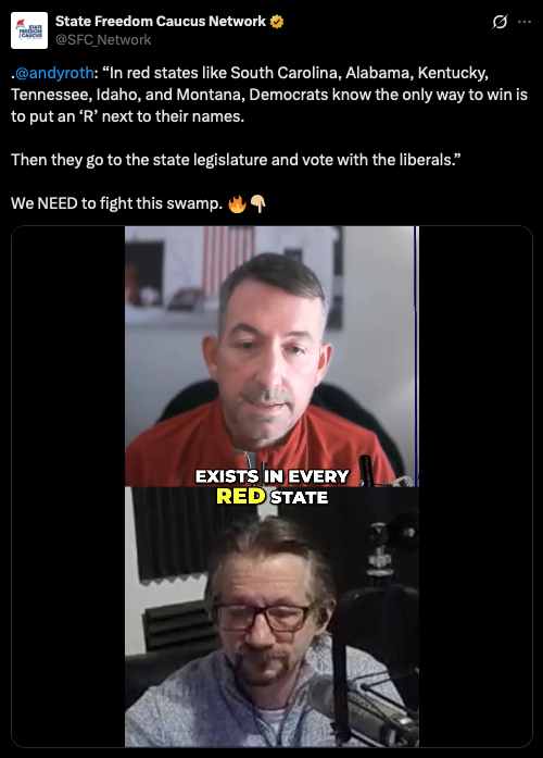 RELATED: After a liberal Republican state senator publicly made false claims about the State Freedom Caucus Network, I called him out directly. He retracted his statement. |