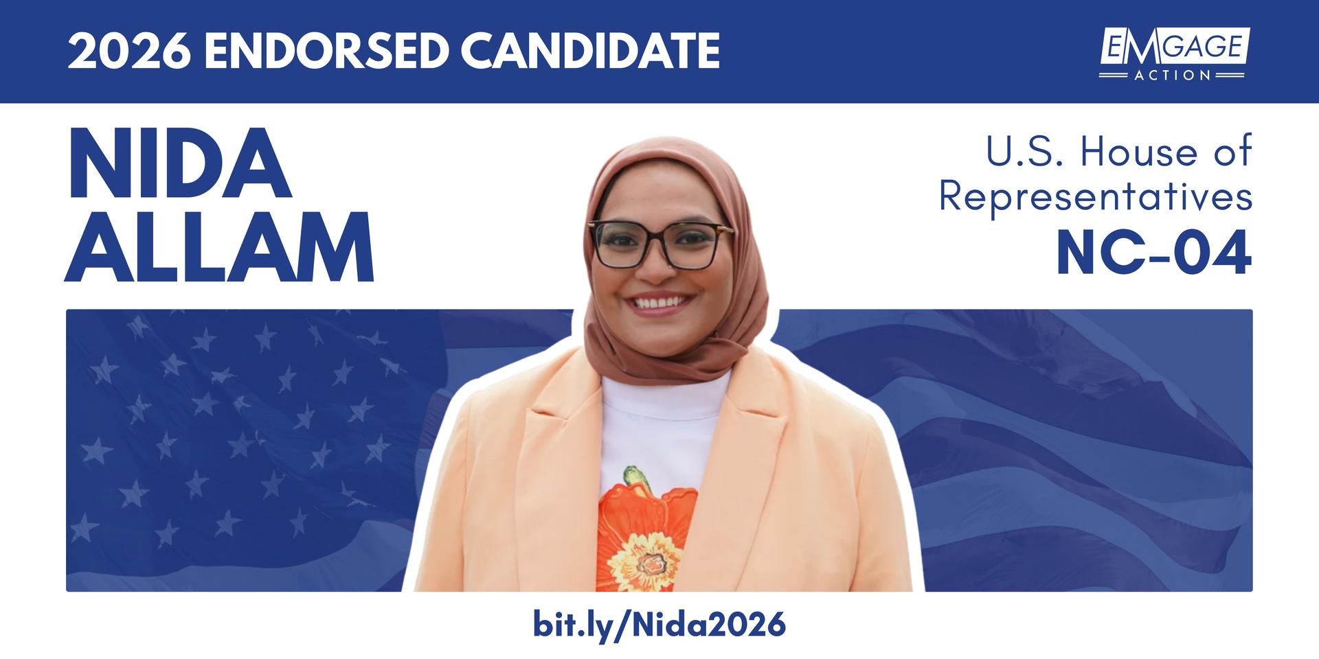 Emgage Action is proud to endorse Nida Allam for U.S. House in NC-04 in 2026.