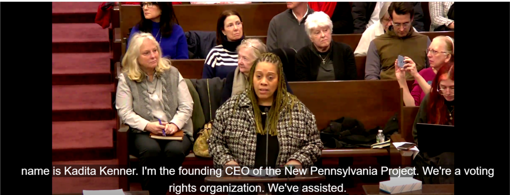 Kadida Kenner, founder and CEO of the New Pennsylvania Project, urged county leaders to focus on rebuilding voter confidence.