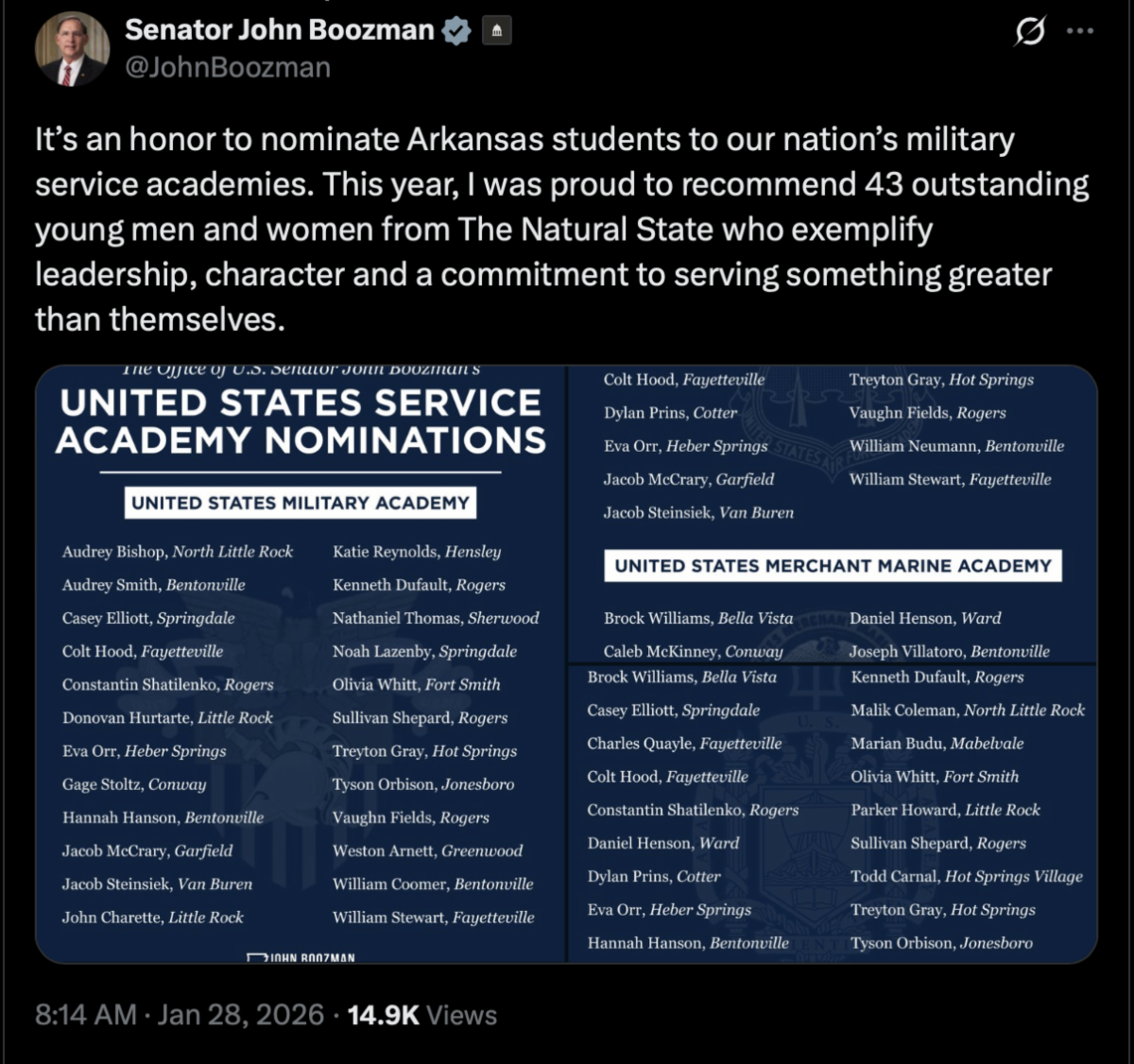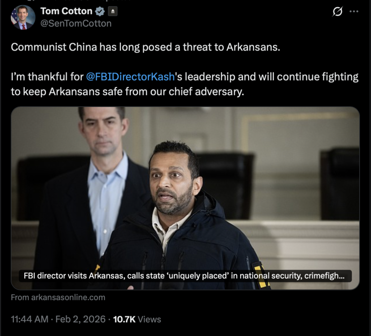 In case you missed it, FBI Director Kash Patel recently visited Arkansas. Director Patel joined Attorney General Tim Griffin and U.S. Senators John Boozman and Tom Cotton for a focused discussion on the influence of Communist China and the impact of Mexican cartels and gang activity on Arkansas.