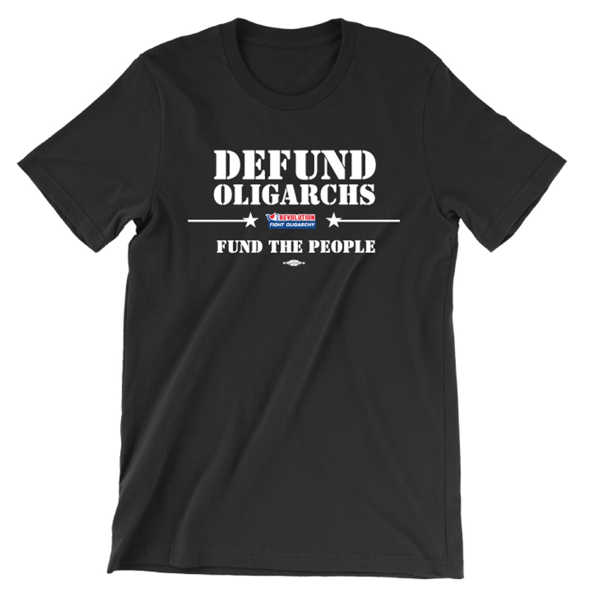 We still have inventory left for our crowd-favorite Defund Oligarchy Merch — now at a special price!