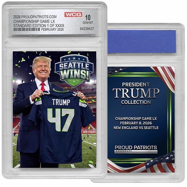 Celebrate Seattle's big win with this limited edition trading card showing President Trump holding his own custom jersey to celebrate the winners! Because he knows winning!