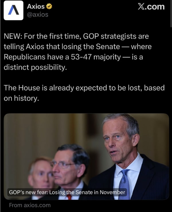 According to reporting from Axios, Republican strategists are privately admitting that their internal polling is "dire." They aren't just worried about the House anymore—they are terrified they’re going to lose the U.S. Senate.