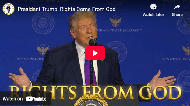 At the 2026 National Prayer Breakfast, President Donald Trump delivered a defining message on the source of American liberty: that our rights come “not by government, but by God Almighty himself.”