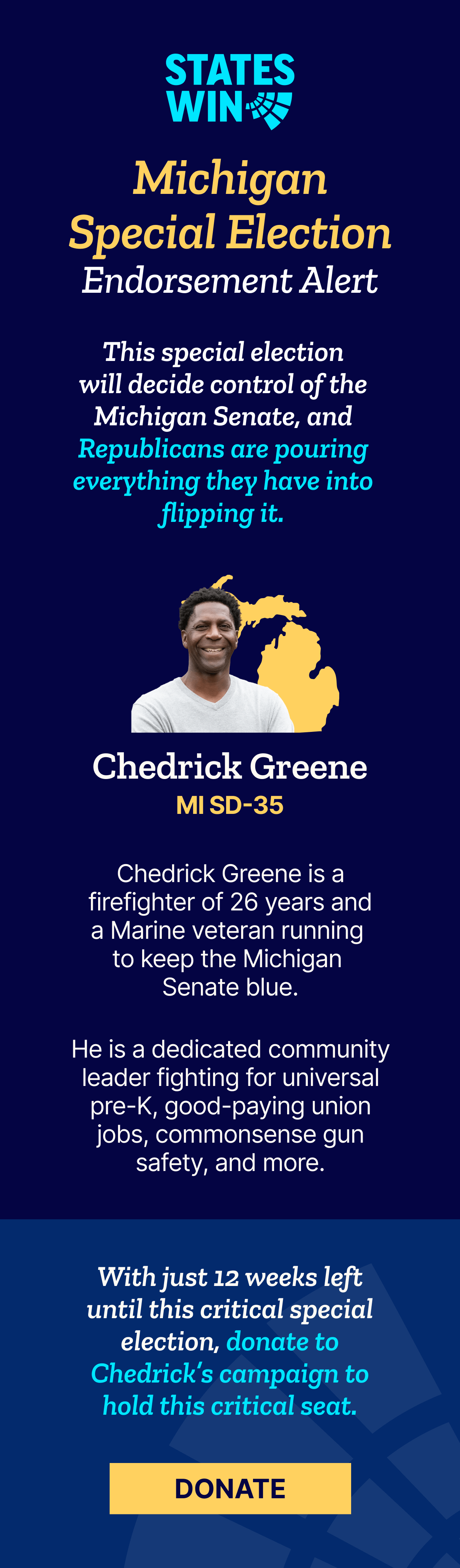 Paid for by States Win, 440 North Barranca Avenue, #8737, Covina, CA 91723. Authorized by the Committee to Elect Chedrick Greene (SD 35).