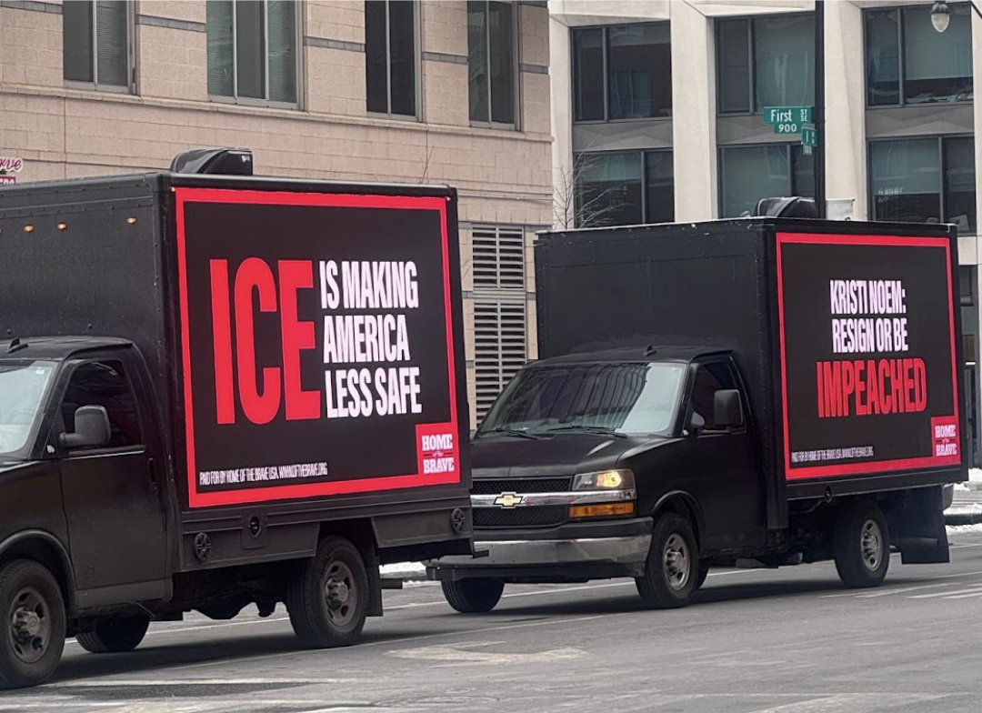 One of our staffers just sent this photo from Washington, DC—mobile billboard trucks blasting anti-Noem and anti-ICE messages right in the heart of our nation’s capital.