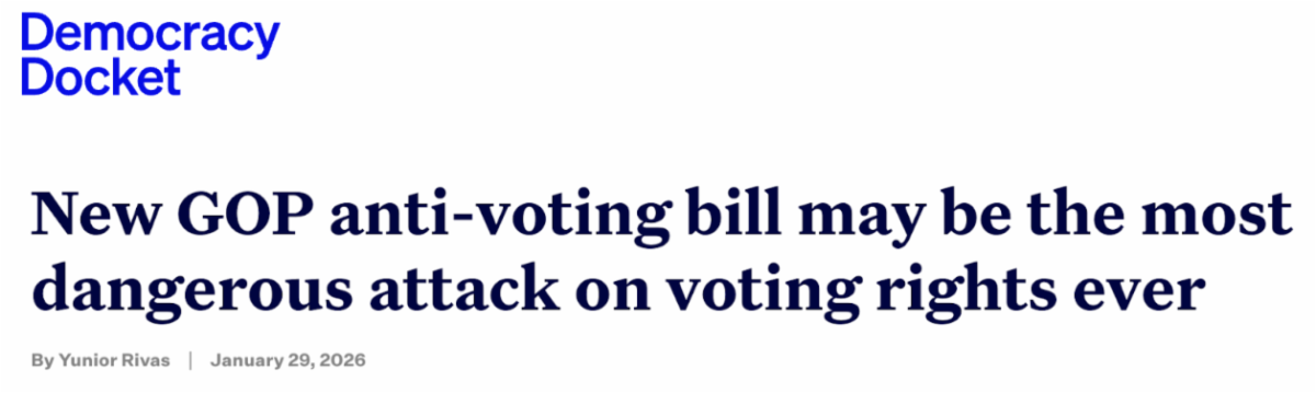 Right now, MAGA Senate Majority Leader John Thune is pledging to bring the SAVE Act to the Senate floor. MAGA Speaker Mike Johnson has already pushed it through the House.
