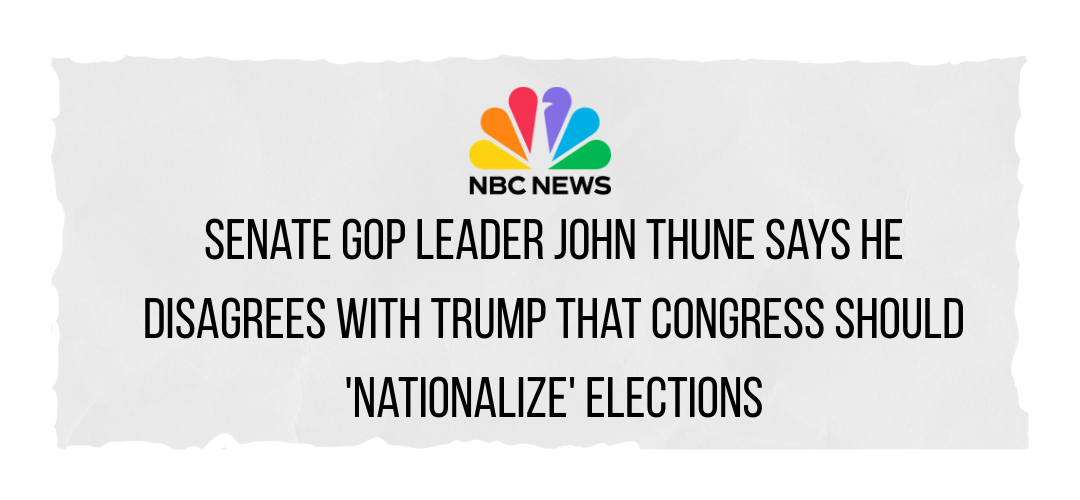 John Thune — the Senate GOP leader — just publicly rejected Donald Trump’s call for Republicans to “nationalize” elections and take control of voting from the states.