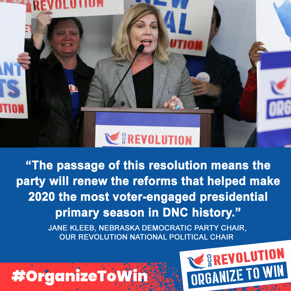 Our Revolution’s theory of change is unique. We strongly believe that grassroots organizing and electoral mobilization must be combined with an inside strategy to transform the Democratic Party to win structural progressive change. That means staying focused on winning concrete victories to level the playing field for progressives insurgents who are running against corporate-financed politicians backed by the Democratic establishment. We are one week out from the Democratic National Convention. Can you chip in here to help Our Revolution continue to empower our incredible local groups to keep up our streak of endorsed progressive candidate victories? Our two recent victories at the DNC are so important for progressives. Our Revolution Board Board Members Larry Cohen and Jane Kleeb helped pass a historic DNC Convention Rules Committee vote to continue the party reforms we won in 2018 through the next presidential cycle. That means limiting the power of Superdelegates from stacking the deck against progressive contenders and making sure that party policies expand voter participation. This might seem like inside baseball — but it’s a critical part of continuing the work that Bernie Sanders started. In the United States, unlike any other democracy, we define our politics by our candidates. Even on the Left, we talk about movement building and organizing yet often are addicted to candidates and ignore the rules — especially when it comes to the rules inside the Democratic Party.