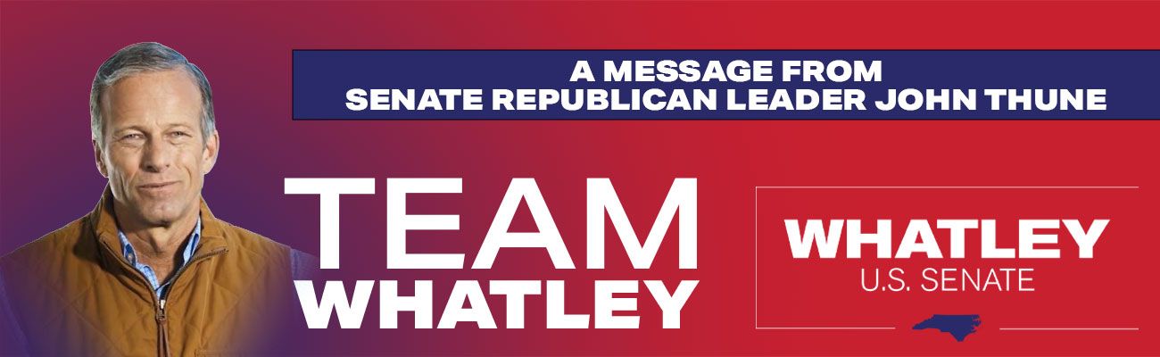 Paid for by Whatley Victory Committee, a joint fundraising committee authorized by and composed of Whatley for Senate, North Carolina First, Republican National Committee, NRSC, and North Carolina Republican Party. PO Box 97275 Raleigh, NC 27624