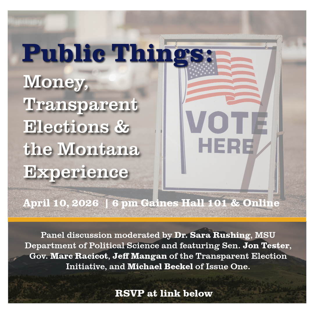 As part of its “Public Things” discussion series, Montana State University will host a bipartisan discussion about the need for campaign finance reform — including what's at stake in The Montana Plan ballot measure proposal to fight corporate and dark money in elections that is expected to be on the ballot in Montana this fall.