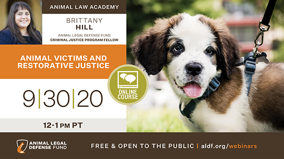 Join Animal Legal Defense Fund Criminal Justice Program Fellow Brittany Hill for Animal Victims and Restorative Justice, a discussion of its potential impact on animal victims and possible applications to crimes against animals.