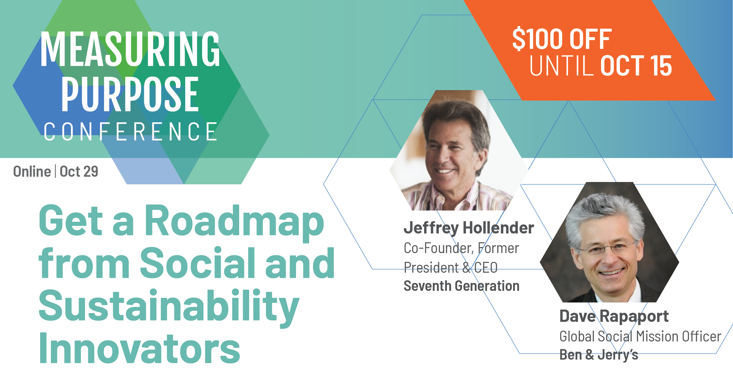 A few more details... MEASURING PURPOSE CONFERENCE ONLINE EVENT | October 29, 2020 What to Expect… Ideas to Steal - Former Seventh Generation CEO Jeffrey Hollender; ASBC Co-Founder, CEO & Board Chair and SVC Board Member & Co-Founder; shares his approach to purpose