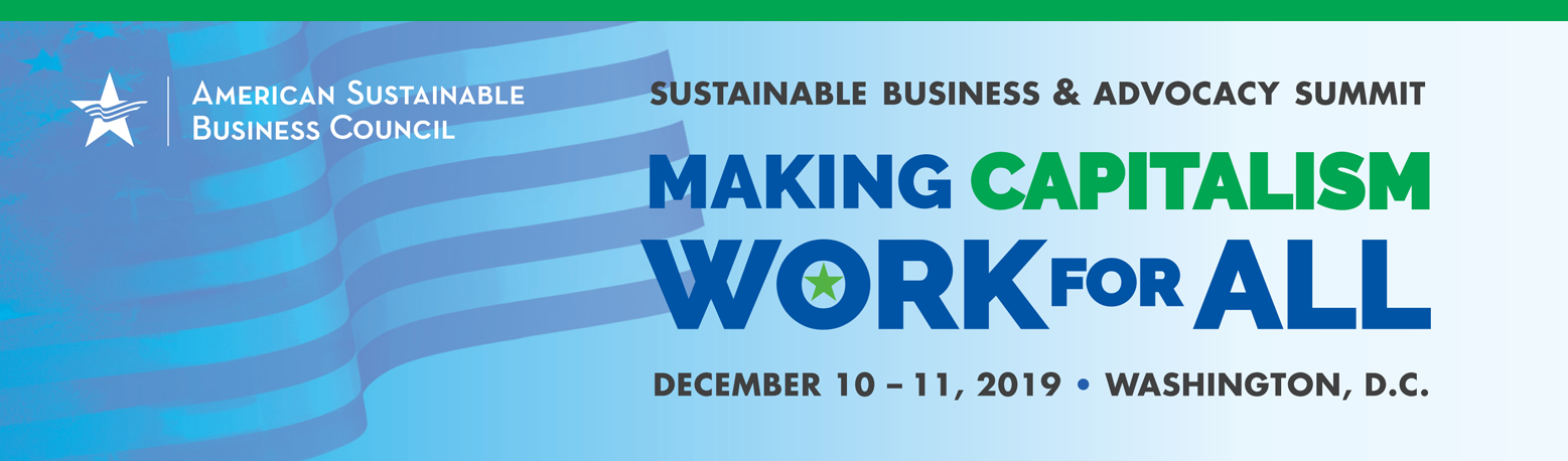 What do you call a market where enormously wealthy corporations degrade our climate -- and get tax subsidies? Good question. Hint: The answer is not “free.” Register NOW for the ASBC Sustainable Business & Advocacy Summit: “Making Capitalism Work for All” — Dec. 10-11, 2019 in DC Dear John, ASBC has a longtime favorite saying: “If you’re not at the table, you’re on the menu.” That’s especially true of climate change. Our “free” market lets fossil fuel giants devour our future – and rewards them with tax subsidies. Redirecting energy subsidies to renewables is a sensible solution. As recently reported in The Guardian, “’Almost everywhere, renewables are so close to being competitive that [a 10-30% subsidy swap] tips the balance, and turns them from a technology that is slowly growing to one that is instantly the most viable and can replace really large amounts of generation,’ said Richard Bridle of the International Institute for Sustainable Development (IISD). “The question now is, can we transition quickly enough away from fuels like coal, and subsidy reform is a very obvious step towards that.” https://www.theguardian.com/environment/2019/aug/01/fossil-fuel-subsidy-cash-pay-green-energy-transition So what’s the holdup? That’s a good question; one of many we’ll be exploring at the ASBC Summit, Dec. 10-11. On the key topic, “What Will It Take to Solve the Climate Crisis?” we’ll hear from provocative leaders like these: | |