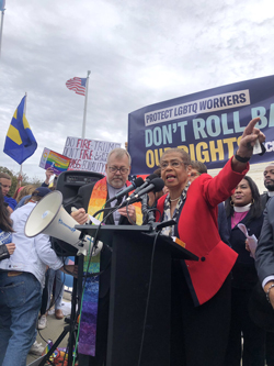 On the day of oral argument, we saw an incredible display of support for LGBTQ equality. The Human Rights Campaign joined the hundreds of people rallying outside outside the Supreme Court that morning, including our own JoDee Winterhof who gave powerful remarks urging the court to protect LGBTQ people and our families.