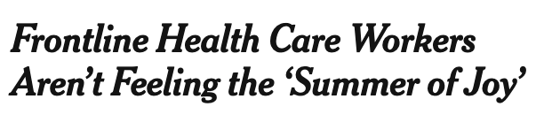 In a New York Times article published last week, health care workers around the country detailed the crisis they are still facing, even in places that have had sharp declines in coronavirus infections and deaths.1
