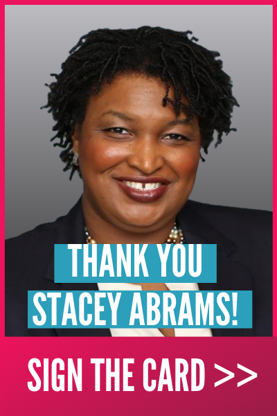 So we’re sending Stacey a HUGE thank you card for her tireless efforts to save our democracy. But we need you to sign the card now to show your support!
